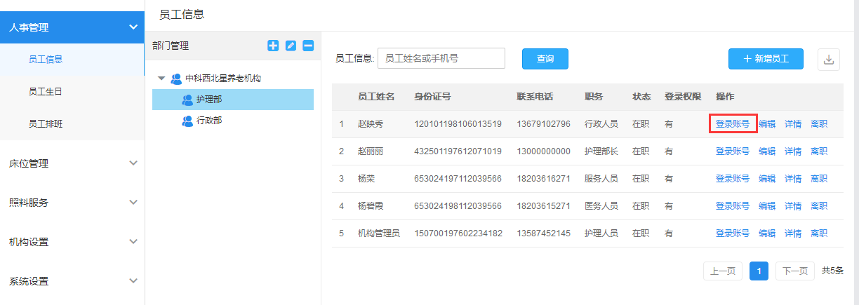 ①老人身份证号支持15位和18位、员工身份证号支持18位;