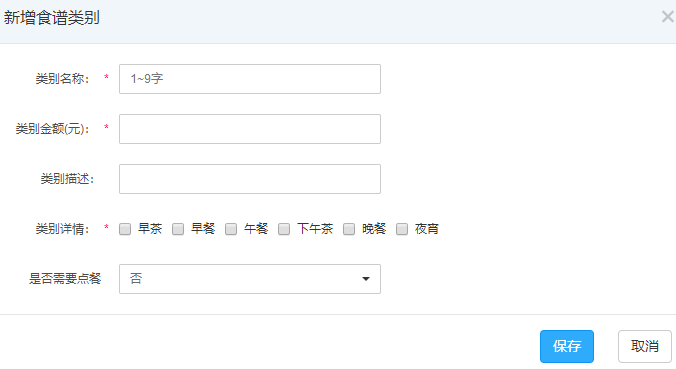 在“点餐管理”—“食物管理”中增加餐饮等级设置,全部内容添加好后点击“保存”即可。