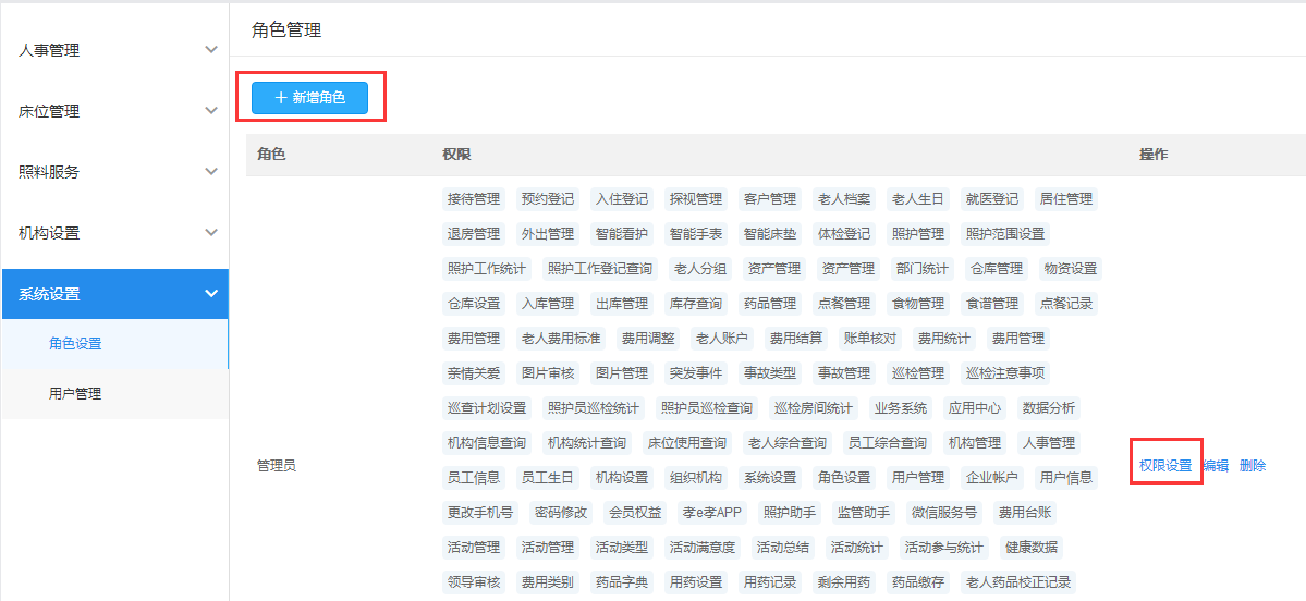 在“系统设置”-“角色设置”中新增角色,再对其角色设置相对应的权限。员工角色则在“员工信息”模块中登录账号里进行设置。